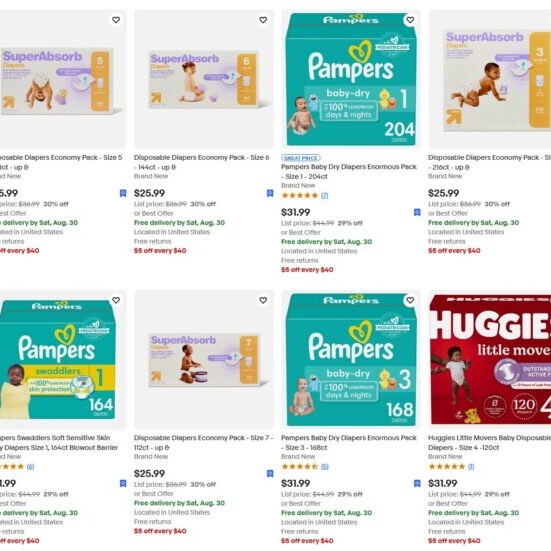 Monthly Reminder That Diapers Are 29-30% Off At Bullseye Deals! Plus Get An Additional $5 Off For Every $40 Spent!