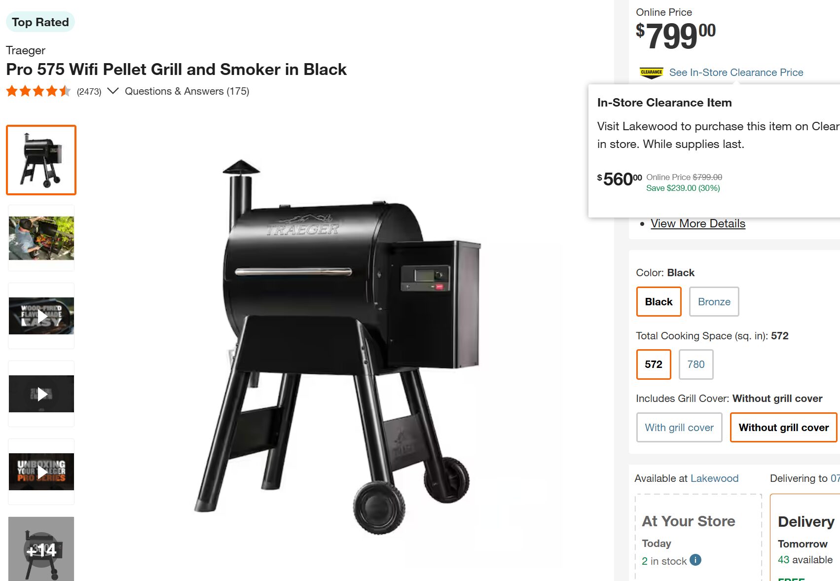 Traeger Pro 575 Wifi Pellet Grill and Smoker Now $560 (Was $799)!
