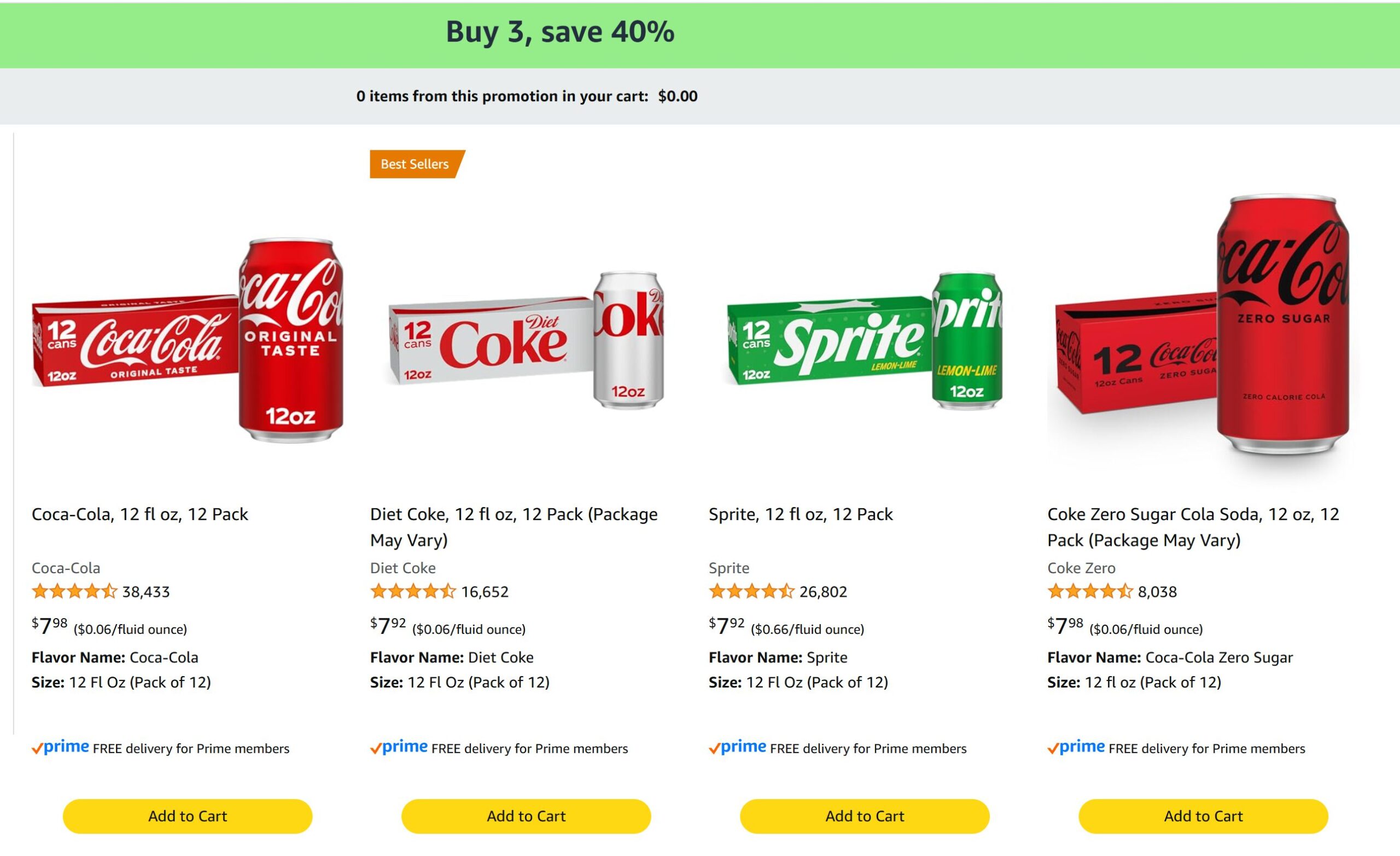 Buy 3 Cases Of: Coke, Diet Coke, Coke Zero, Sprite, Or 7UP & Get 40% Off At Amazon!